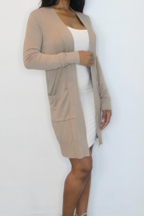 A cozy and elegant long cardigan crafted from soft knit fabric, perfect for layering and adding warmth with effortless a style.